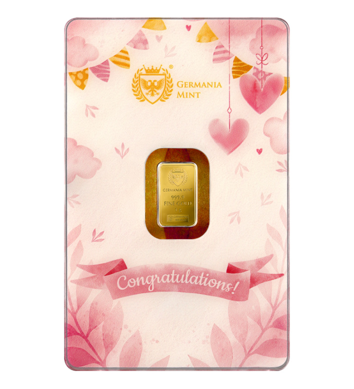 That’s why the Germania Mint Gold Minted Bar 1 g is now available in dedicated Safepack packaging, featuring a design that reflects the significance of this precious moment.