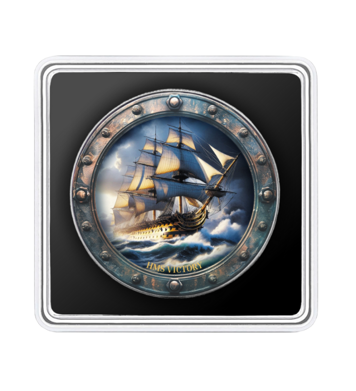 This beautiful 1 oz silver coin is part of the “Famous Ships” series and is dedicated to HMS Victory.