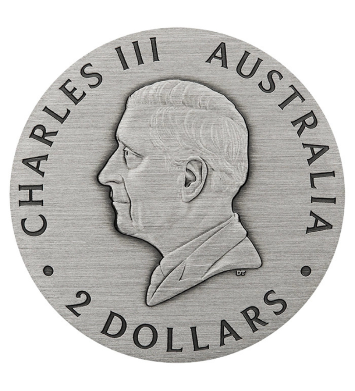 Obverse: presents a portrait of His Royal Majesty King Charles III, created by Dan Thorne. The image is set against a minimalist background typical for Australian issues, emphasizing the prestige and significance of the coin. The obverse design includes issuer information and the coin’s face value.