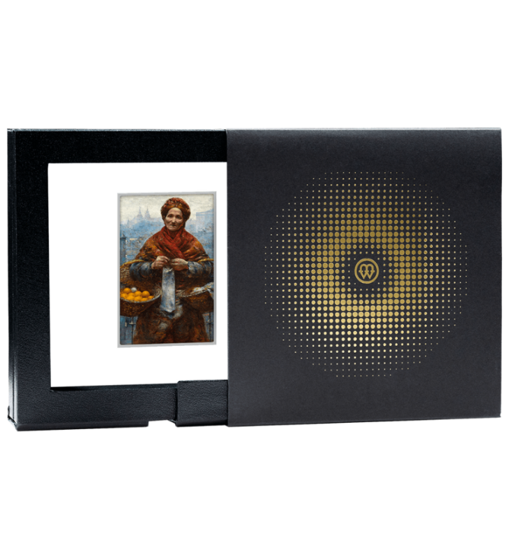 The coin faithfully reproduces every nuance of the original — subtle transitions of color, the cool background, and the warm glow of the fruit — preserving both the painter’s truth and the emotional depth of one