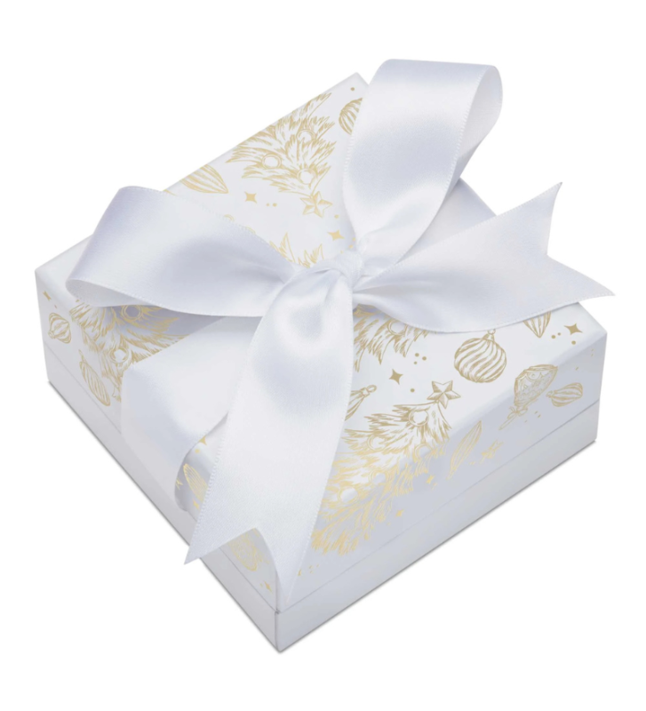 The coin is housed in an elegant display case with a clear lid, and presented in a gold-foiled Christmas gift box with a bow — perfect for holiday gifting. It comes complete with a numbered Certificate of Authenticity.