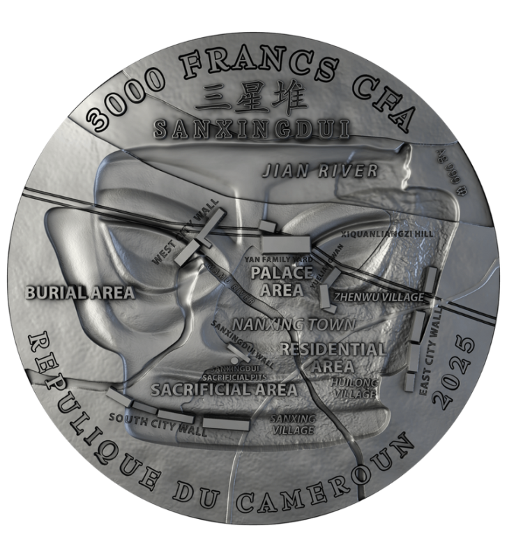 Each detail of the coin reflects the look of a 3,000-year-old artifact, while the combination of recessed sculpture and high relief symbolizes the duality of the material and spiritual worlds.