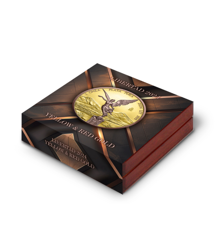 The coin has been enriched with yellow and rose gold finishing. It comes in a wooden display box along with a certificate of authenticity.