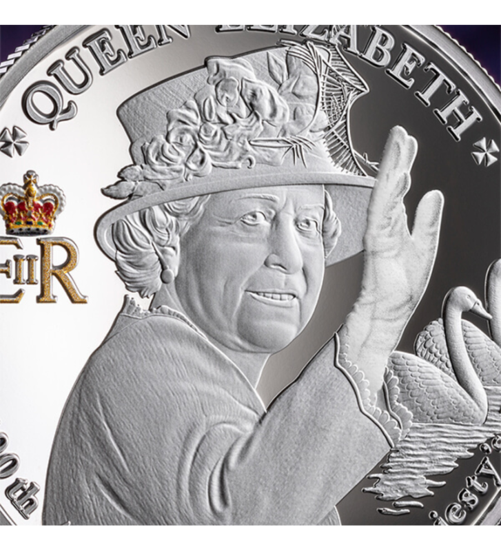 Struck in proof quality silver, the coin presents a refined portrait of Queen Elizabeth II, enriched with digital printing and digital gilding to highlight her enduring legacy. Every detail reflects the grandeur of her legacy and the timeless reverence she inspires.