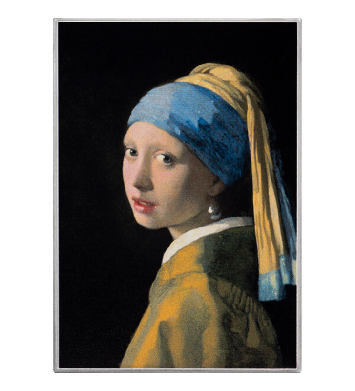 The MINT XXI Art Gallery collection honors an iconic portrait with a coin featuring Girl with a Pearl Earring by Johannes Vermeer, one of the most iconic portraits of the Dutch Golden Age. Often called the “Mona Lisa of the North,” the painting captures a fleeting glance and the luminous beauty of a single pearl, transforming simplicity into timeless elegance.