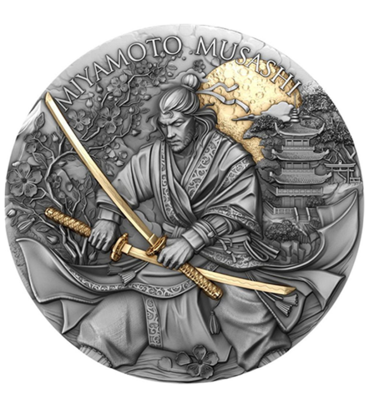 This beautiful 2 Oz Silver coin is dedicated to Miyamoto Musashi and belongs to the series of "Legendary Warriors".
