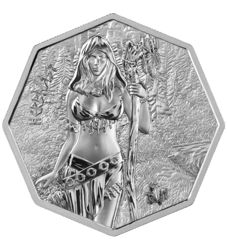 Herbalist to druga bohaterka wyjątkowej serii Witchcraft od Germania Mint. Moneta 2025 Witchcraft: Herbalist 1 oz Silver BU kontynuuje kolekcję ukazującą niezwykłe kobiety z germańskiej mitologii, obdarzone tajemną wiedzą i mocą. Zielarka była strażniczką pradawnych sekretów natury – potrafiła rozpoznawać właściwości każdej rośliny i tworzyć z nich lecznicze mikstury i napary o magicznej sile.