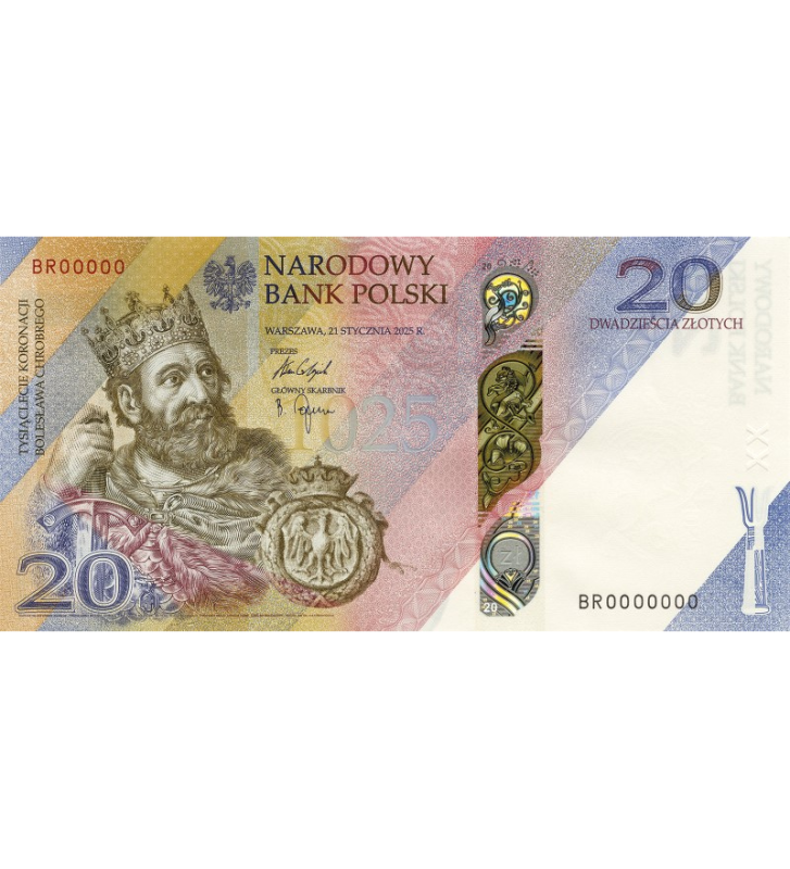 Banknot powstał z okazji uczczenia 1000 rocznicy koronacji Bolesława Chrobrego, która miała miejsce w roku 1025.