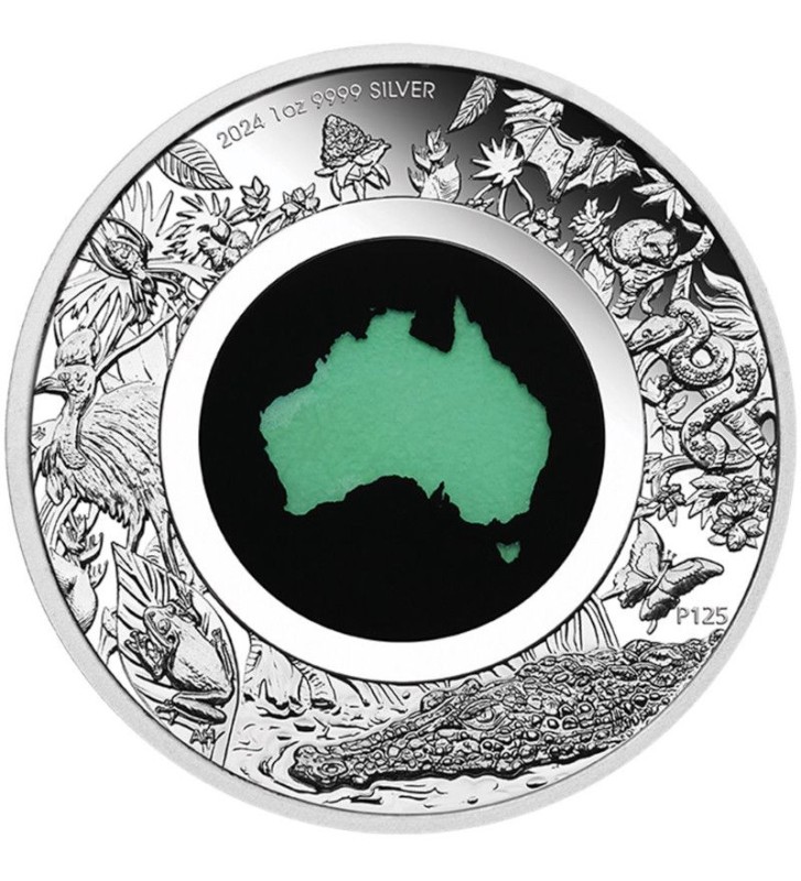 Świętując florę i faunę kultowego australijskiego lasu deszczowego, moneta przedstawia (zgodnie z ruchem wskazówek zegara od prawego górnego rogu) latającego lisa, oposa, węża drzewnego, zimorodka, krokodyla, motyla, żabę drzewną, kazuara, pająka kulozębnego i inne ptaki. Oprócz przedstawień życia roślinnego projekt zawiera znak mennicy „P125” oznaczający 125. rocznicę The Perth Mint w 2024 r. oraz wagę, czystość i datę 2024 r. monety.