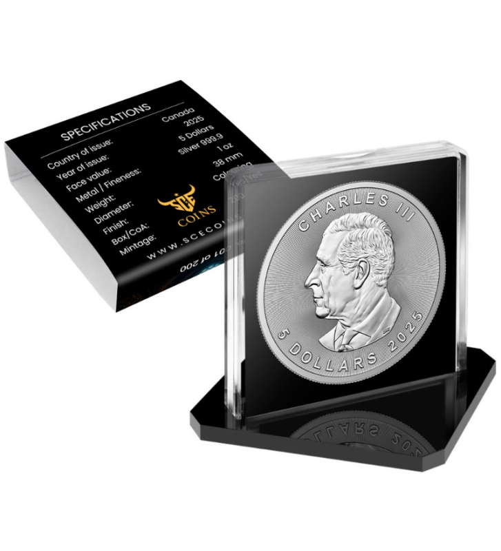 Do tego projektu wykorzystano kanadyjską monetę Maple Leaf 1 oz srebra z 2025 roku.