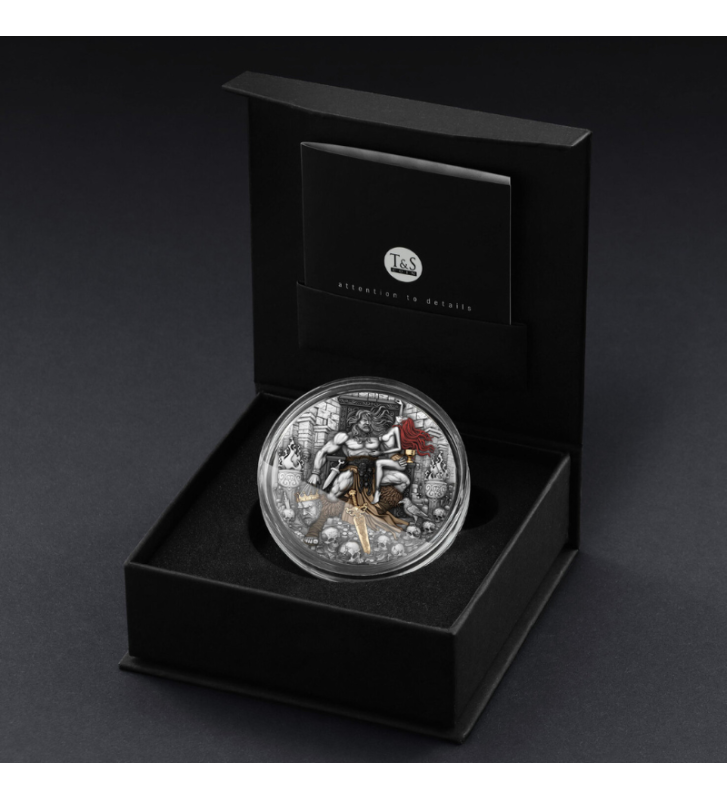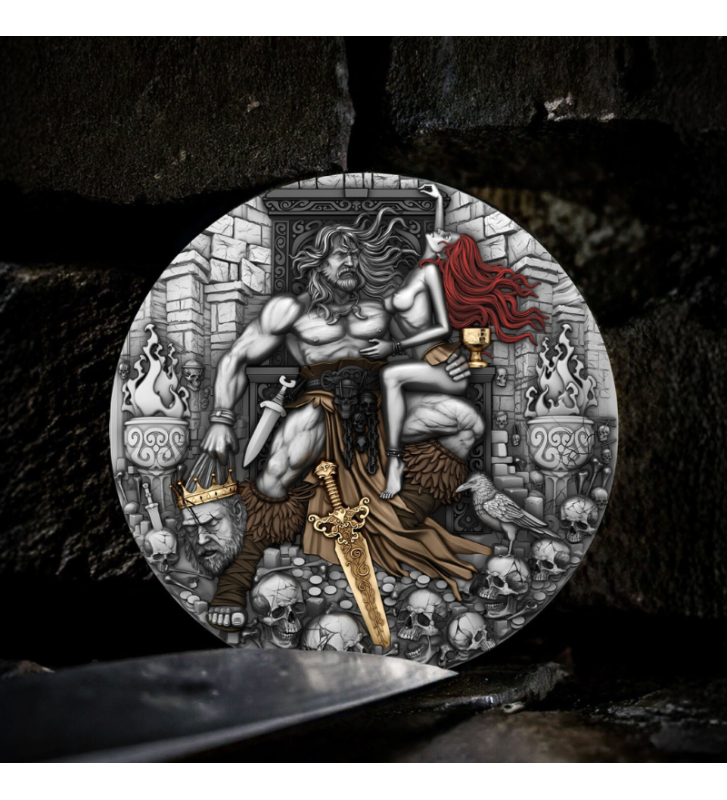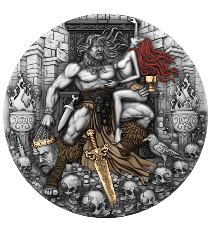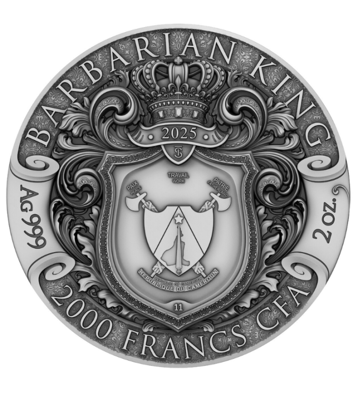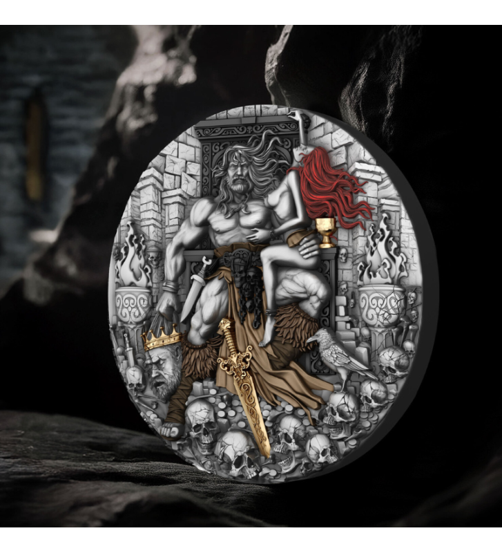 Wybita w srebrze – pradawnym metalu blasku księżyca i nieśmiertelności – ta moneta to więcej niż relikt. To saga zaklęta w metalu, hymn furii i triumfu, echo zapomnianych bardów. Trzymając ją, chwytasz sam mit Króla Barbarzyńcy – władcy i wiecznego płomienia dominacji.