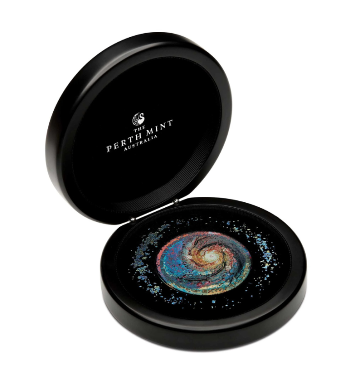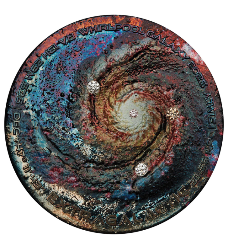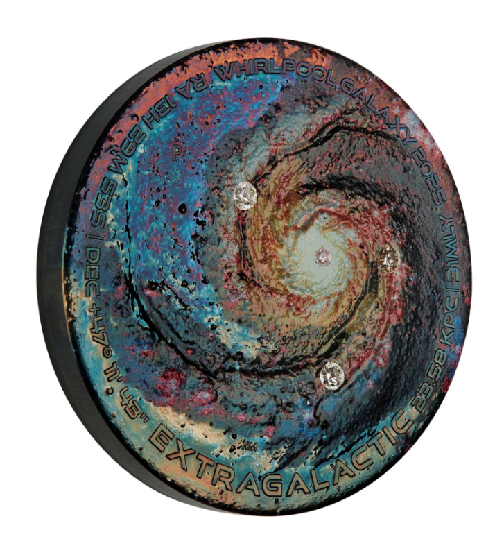Wejdź do serca Galaktyki Wir (Whirlpool Galaxy) z monetą Extragalactic — unikalnym i zapierającym dech w piersiach dziełem, które łączy w sobie sztukę, astronomię i mistrzowskie rzemiosło.