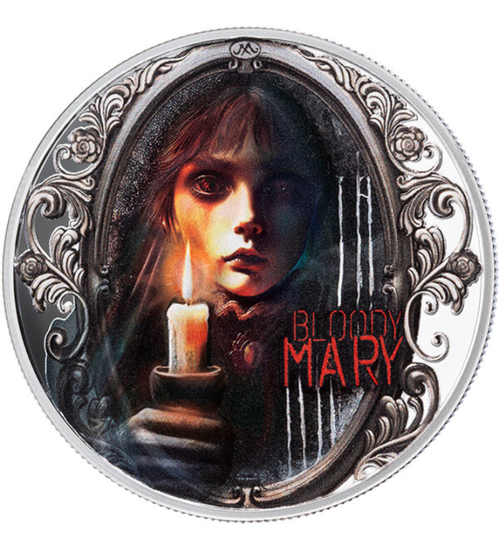 Ta jednouncjowa moneta ze srebra najwyższej próby (proof) ukazuje jej widmową obecność dzięki wyrazistemu nadrukowi cyfrowemu, z przerażającą precyzją oddając każdy szczegół. Lustrzany motyw wciąga Cię do jej świata, zacierając granicę między legendą a rzeczywistością.