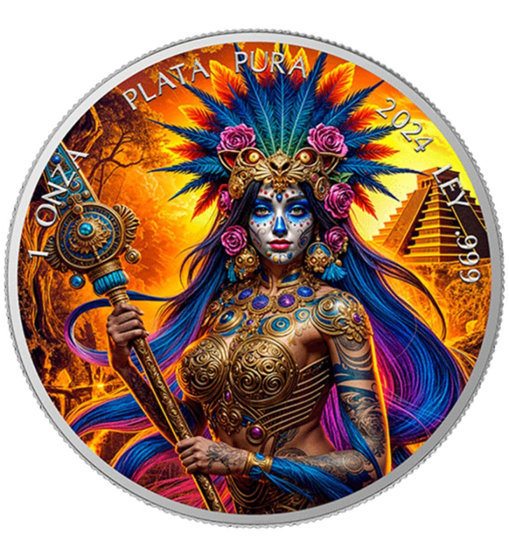 Ta piękna srebrna moneta o masie 1 uncji poświęcona jest Dniu Zmarłych, upamiętniającemu święto LIBERTAD ANCIENT WARRIOR.