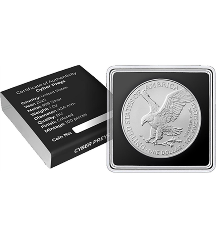 Ta piękna srebrna moneta o masie 1 uncji jest poświęcona MOUSE Cyber Preys.