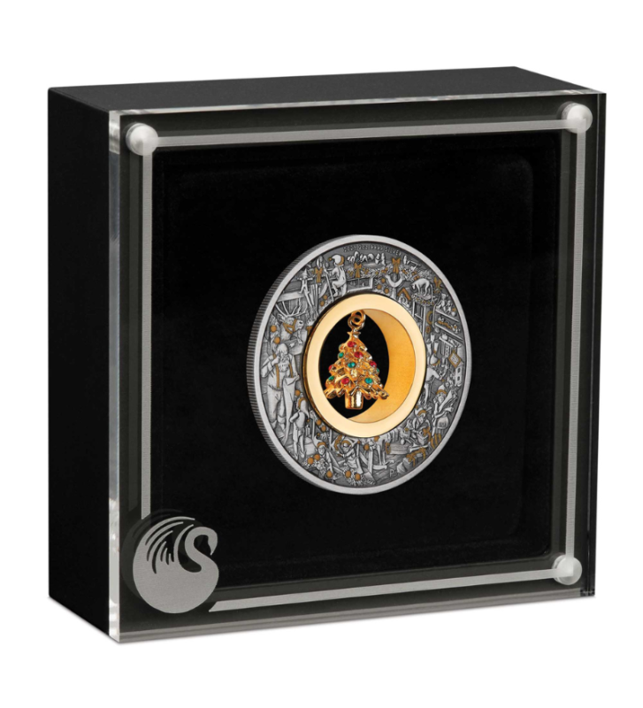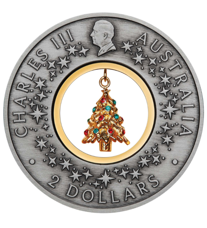 W centrum monety zawieszona jest 24-karatowa pozłacana figurka choinki, ozdobiona kryształkami Swarovskiego, które imitują bombki. Choinka to tradycyjny symbol świąt Bożego Narodzenia, odzwierciedlający zmieniające się pory roku i czas wzajemnego obdarowywania się prezentami.