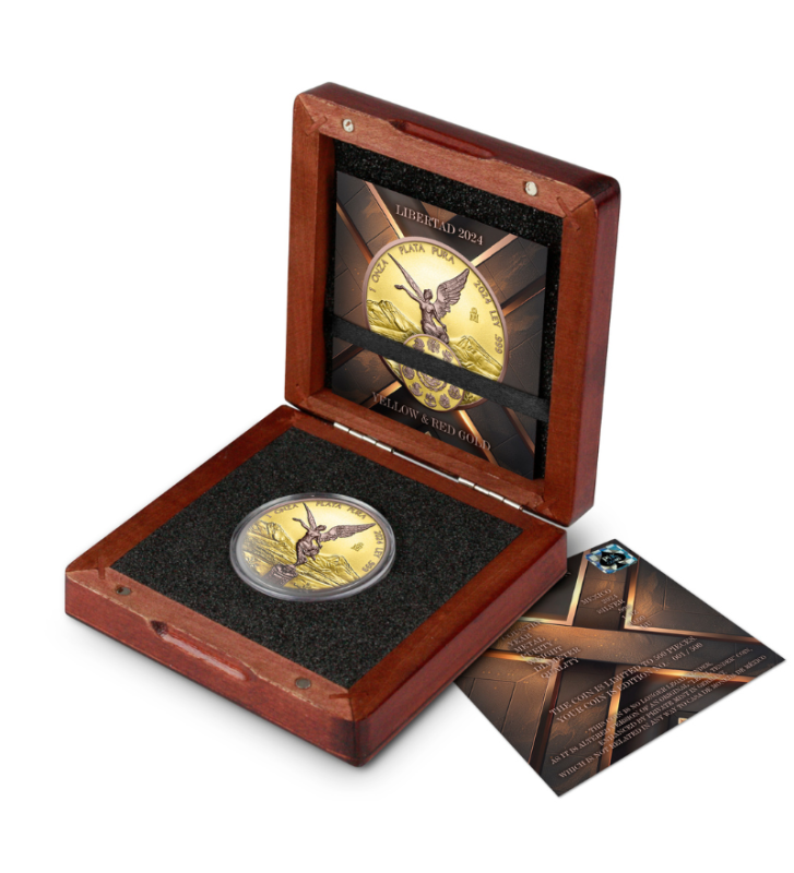 Moneta została uszlachetniona żółtym i czerwonym złotem. Jest dostarczana w drewnianym pudełku wraz z certyfikatem autentyczności.