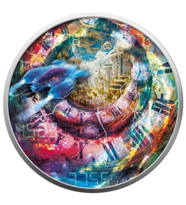 Jednouncjowe srebrne monety próbny 999 zostały uszlachetnione efektem Metallic Colours oraz Hologram - neonowa paleta barw i cyfrowe liczniki tworzą wizję przyszłości pulsującej cyfrowym tętnem.