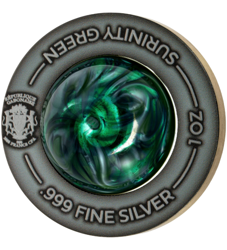 Efekt to hipnotyzująca głębia kolorów i struktur, przywodząca na myśl nieskończone piękno wszechświata. Otoczona delikatnym giloszowanym wzorem i wykończona w antycznym stylu, Surinity Green łączy nowoczesną sztukę szklaną z mistrzowską sztuką menniczą w sposób, jakiego wcześniej nie widziano.