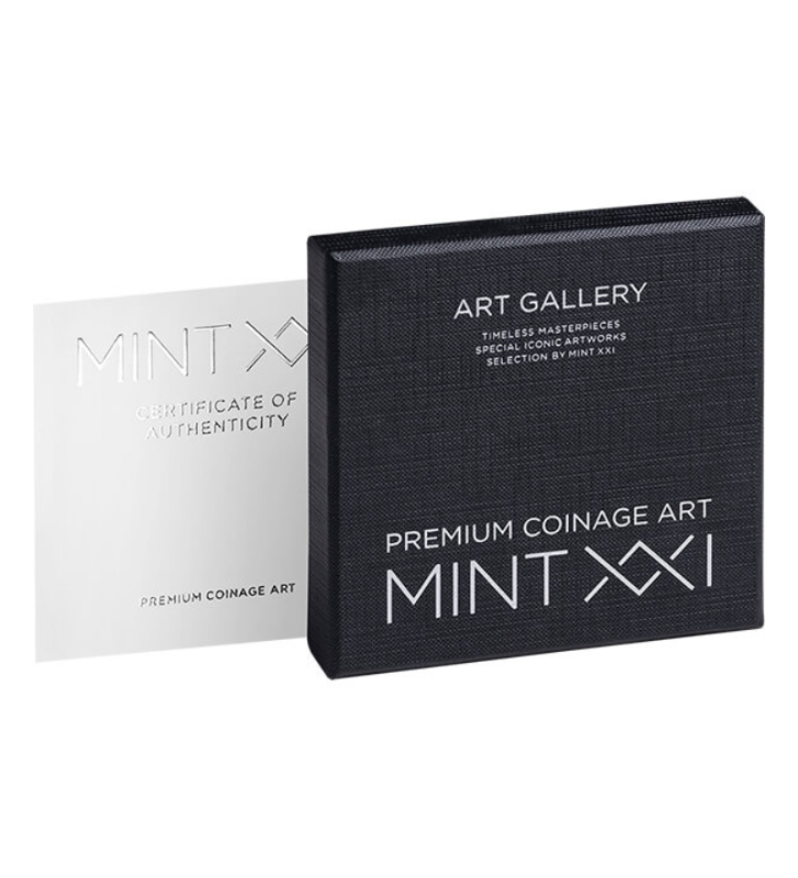 Moneta wybita z 1 uncji srebra próby .999 w jakości proof, wzbogacona wysokowymiarowym nadrukiem cyfrowym, wiernie zachowuje mistrzowskie dzieło Moneta w żywych detalach. Limitowana do tylko 1000 egzemplarzy na całym świecie, kontynuuje podróż kolekcji MINT XXI Art Gallery, przekształcając ponadczasowe dzieła sztuki w srebrne skarby.