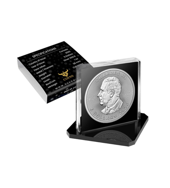 W tym projekcie wykorzystano srebrną monetę Liść Klonowy Kanada 2025 o wadze 1 uncji.