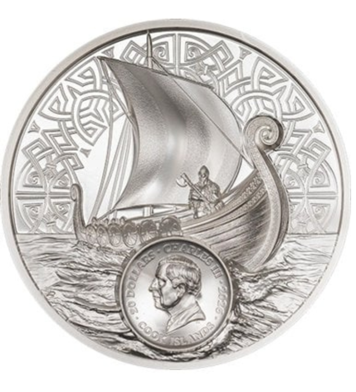Moneta imponująco przedstawia wszystkie trzy postacie w ultra wysokim reliefie. Ich agresywne wyrazy twarzy i broń jasno przekazują: jesteśmy gotowi na wszystko. Wzór tła symbolizuje święte sale Walhalli – miejsce spoczynku poległych wojowników w mitologii nordyckiej.