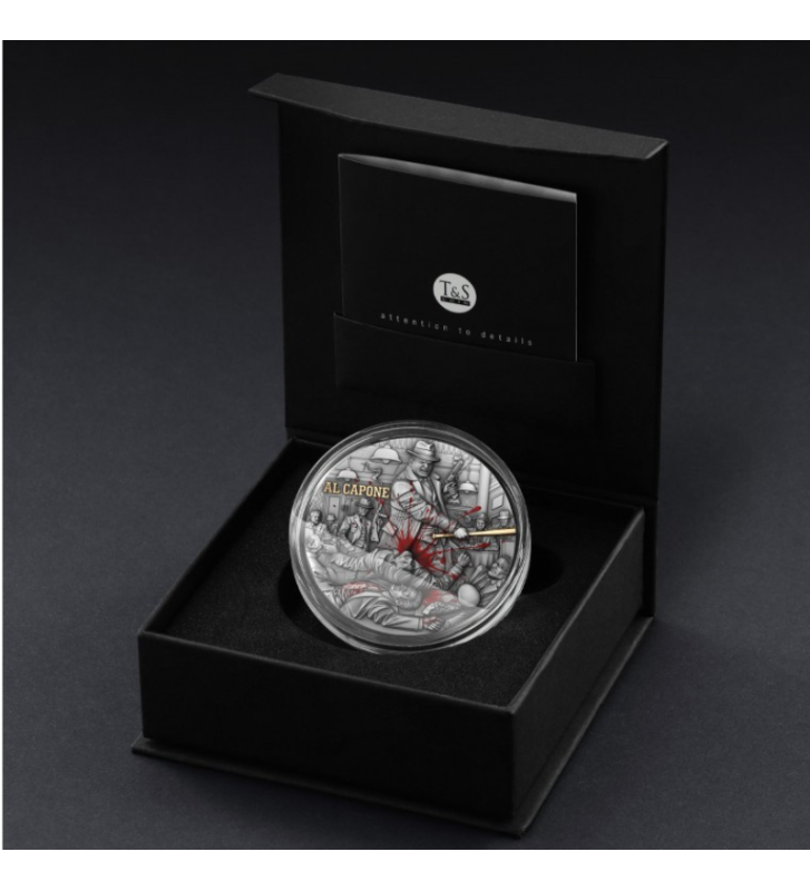 Ta moneta otwiera nową serię „Empires of Crime” — poświęconą pięciu najsłynniejszym bossom, których rządy naznaczyły historię brutalnością, odwagą i bezwzględną logiką przetrwania.