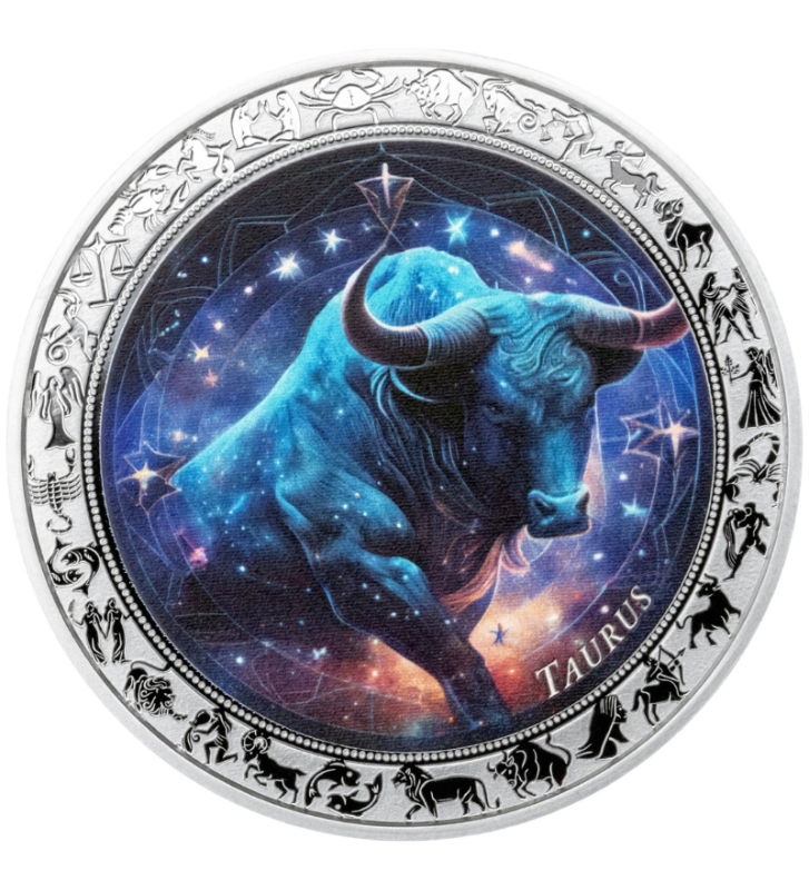 Ta kosmiczna 1‑uncyjna srebrna moneta jest częścią mistycznej serii „Space Zodiac”.