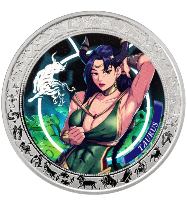 Pod znakiem Byka rodzą się ci, którzy czują skórą, kochają kośćmi i pozostają niewzruszeni, gdy świat drży. Przedstawiona w wyrazistym stylu anime i wykończona w olśniewającej jakości proof, moneta sprawia wrażenie żywej.