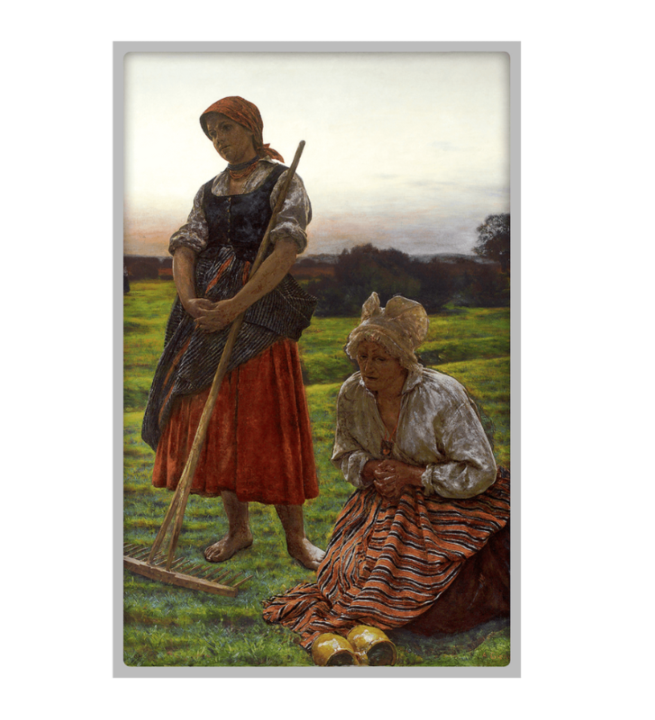 W „Aniele Pańskim” skupił uwagę na codziennej scenie modlitwy, ukazując ją z charakterystyczną dla siebie dbałością o detal i naturalne światło.