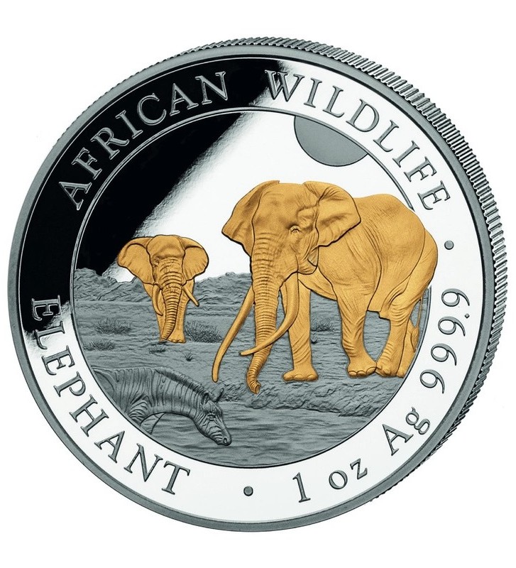 Somalia: African Wildlife – Elephant 1 uncja Srebra 2026 Pozłacany to wyjątkowa moneta kolekcjonerska emitowana przez Somalię, wybita w jednej uncji srebra najwyższej próby 999,9 i dodatkowo pokryta selektywnie złoceniem. Moneta o średnicy 38,6 mm i nominale 100 Shillingów należy do prestiżowej serii „African Wildlife”, która celebruje najbardziej charakterystyczne gatunki afrykańskiej fauny, ukazując ich piękno i znaczenie w ekosystemie. Złocone detale rewersu nadają wizerunkowi zwierząt dodatkowego blasku, podkreślając majestat słoni i elegancję zebry. Seria cieszy się ogromnym zainteresowaniem kolekcjonerów na całym świecie, będąc połączeniem kunsztu menniczego z edukacyjnym aspektem przybliżania afrykańskiej przyrody.